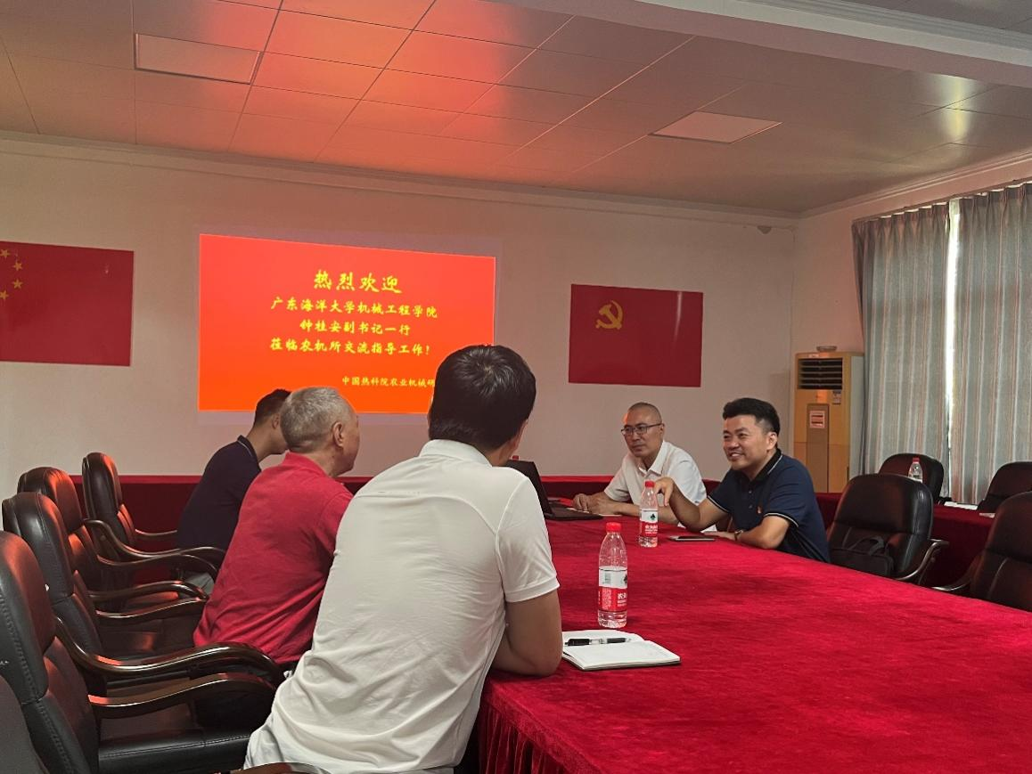 农机所原党委书记李明福三级研究员、科办主任刘志强副研究员、牛钊君副研究员接待了调研团队,热情介绍了中国热科院农业机械研究所的发展历程、装备科研等情况,表达在科研、人才培养、科创比赛等方面加强深入合作的意愿。钟桂安介绍了德赢vwin体育官网登录人才培养等方面基本情况,以及近几年学院学生科创团队在中国国际“互联网+”大学生创新创业大赛中取得的成绩,侯明鑫博士介绍了创新创业团队准备培育参加比赛的项目方向,双方就智能制造、农机机械、海洋装备、北斗农业应用等方面开展了深入交流,达成了进一步合作的意向。