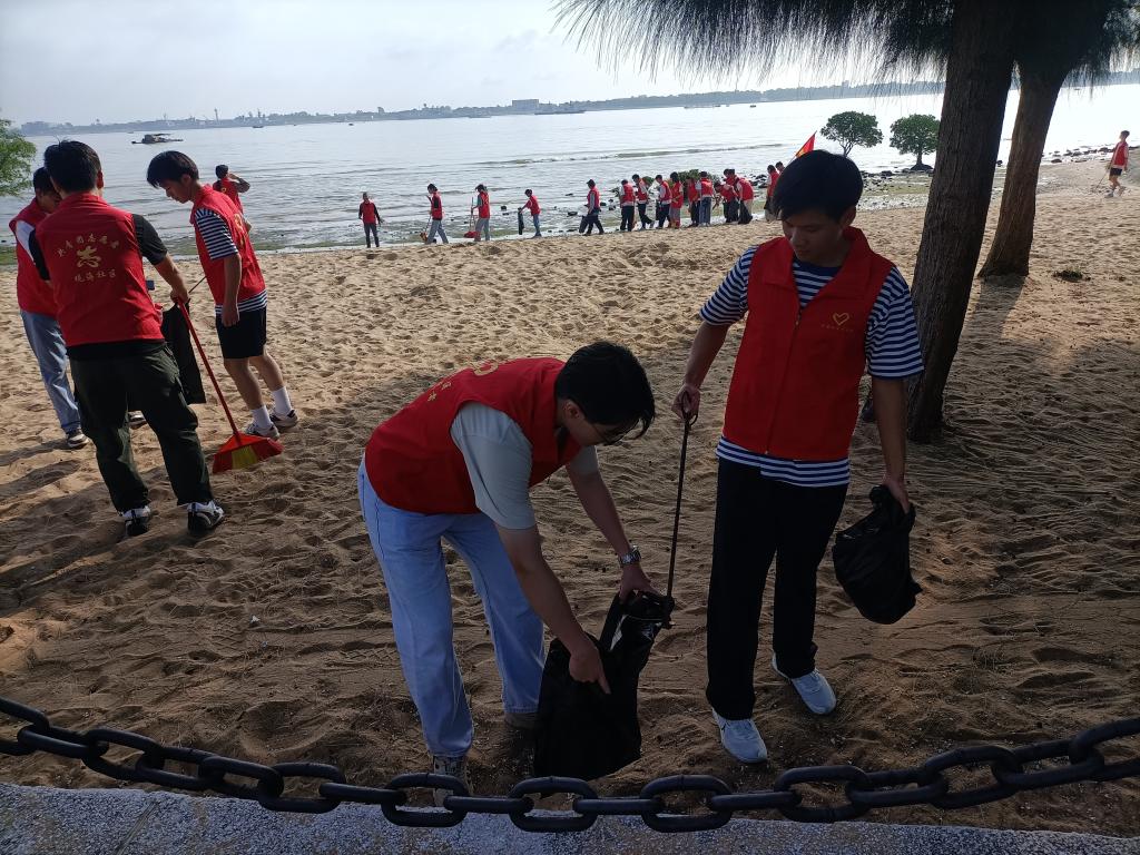 活动期间,学院师生首先参观观海社区新时代文明实践站,了解社区文化活动,学生代表向社区群众做“垃圾分类让城市更清洁”的宣讲。随后学院师生穿上红马甲,在社区工作人员带领下赴红树林开展志愿服务活动,此次活动共有三个环节,分别为“海滩清洁,从我做起”、“河”我一起,净滩同行”、“垃圾分类靠大家,健康生活你我他”,志愿者们有的拿着铁夹子,有的拿着垃圾袋,有的拿着扫帚,互相配合,争先恐后地清理沙滩上、河岸边的漂流废弃物和被人随手丢弃的垃圾。