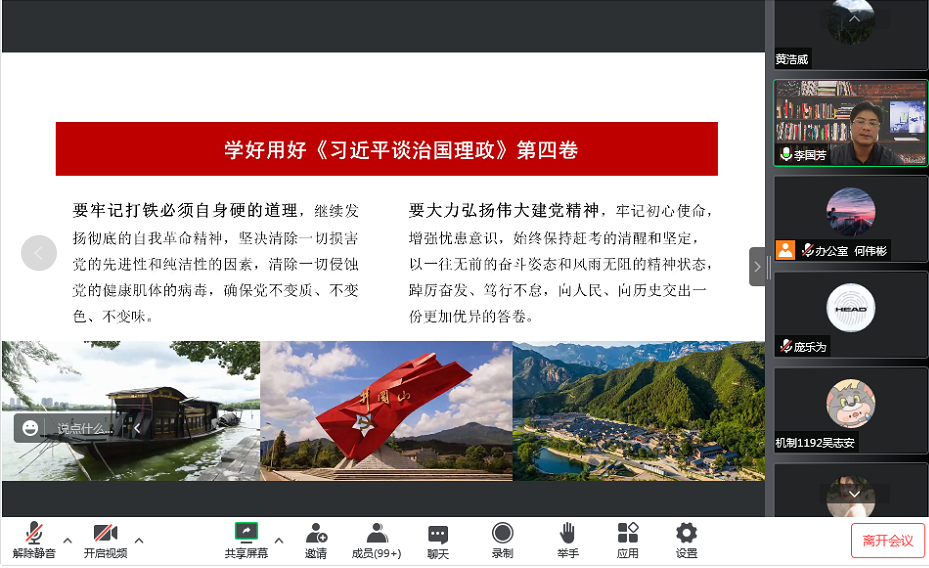 9月29日下午,德赢vwin体育官网登录党委书记李国芳通过腾讯会议作了题为《学深悟透(习近平谈治国理)第四卷》的思政第一课,全院团学干部、党员及入党积极分子共298人听课。李国芳介绍了《习近平谈治国理政》第四卷的总体框架和主要内容以及重要意义。并从把握“两个确立” 做到绝对忠诚、把握“两个结合”坚定理想信念、把握“两个大局”坚持敢于斗争、把握“两件大事”强化责任担当、把握“两个答案”永葆先进本色阐述了研读《习近平谈治国理政》第四卷的要求和体会。最后,他希望同学们一定要刻苦学习、掌握知识、锻炼能力、提升本领,弘扬伟大建党精神,发挥先锋模范作用,不断打下坚实的思想政治基础和知识理论基础。