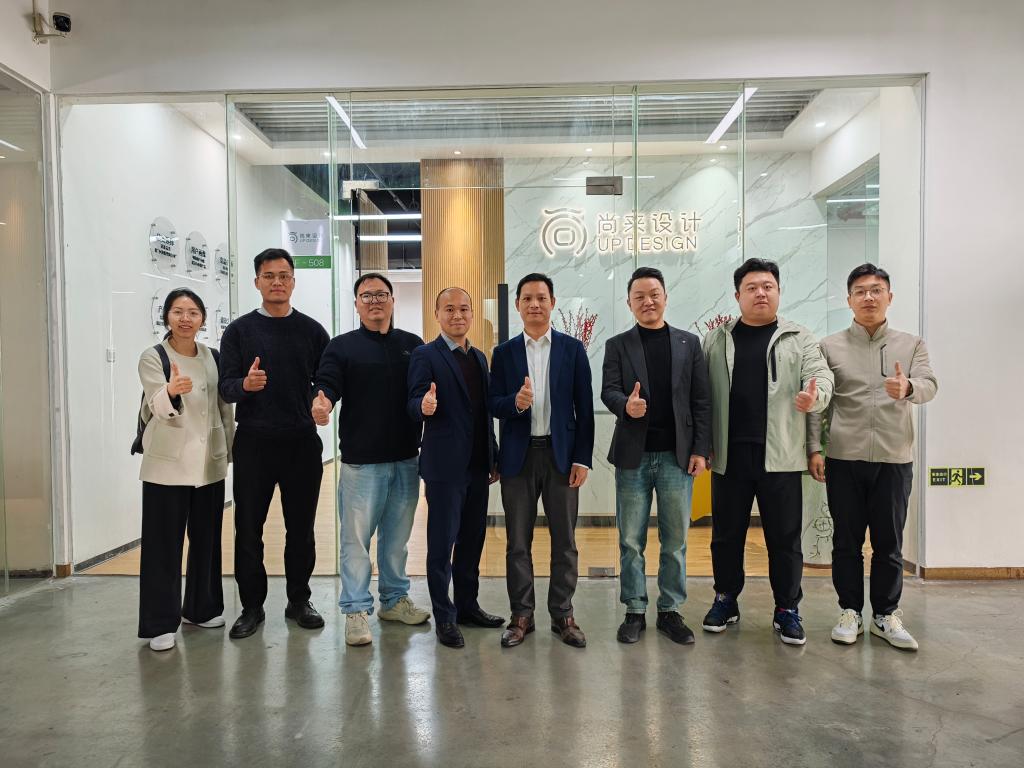 与此同时,梁吉霖一行还实地走访了江门市融海医疗科技有限公司、中山市纽邦工业产品设计有限公司、中山市尚来工业产品设计有限公司、集颜科技(广州)有限公司等多家优秀校友企业,围绕学科建设、人才培养、创业就业以及筹备学院校友会成立等重要事宜展开了全面而深入的探讨。