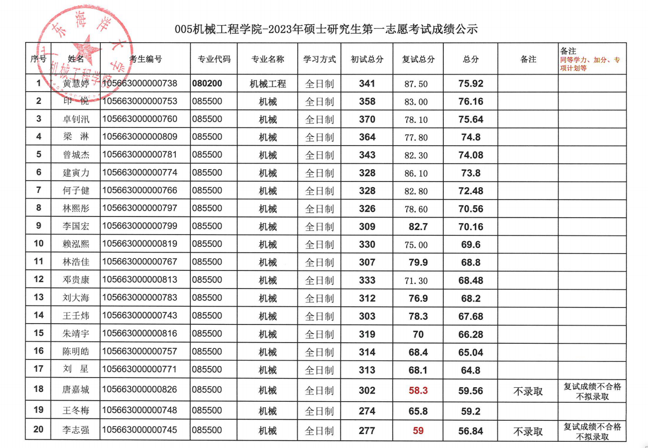 现将2023年硕士研究生招生机械工程及机械专业第一志愿考试成绩公示如下。公示时间为10个工作日,从2023年4月4 日—2023年4月19日止。